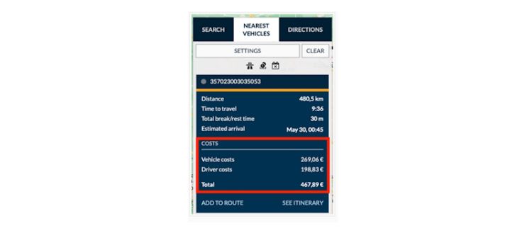Korisnici Frotcoma sada mogu pristupiti izračunima troškova dok određuju rute i lociraju najbliža vozila, što znači da vi, kao vlasnik ili upravitelj voznog parka, možete donositi odluke na temelju podataka uzimajući u obzir optimalne rute i povezane troškove. Tvrtke mogu značajno poboljšati kontrolu uzimajući u obzir troškove povezane s potrošnjom goriva i plaćama vozača. Štoviše, integracija omogućuje ažuriranje troškova u stvarnom vremenu, osiguravajući vam pristup najtočnijim i najnovijim informacijama.